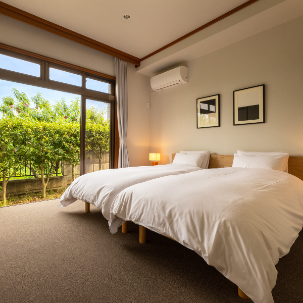 All of the rooms are bright and face south, and this Western-style room in particular has the best view of Mt. Fuji on clear days.